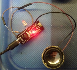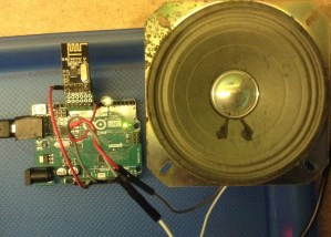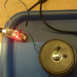This is essentially the same circuit as before, but now I’m duplicating the speaker boards to give me four receiving nodes. Once again I’ve made use of my RF Nanos that have the nRF24L01 radios built in – see my last post on the topic for details.