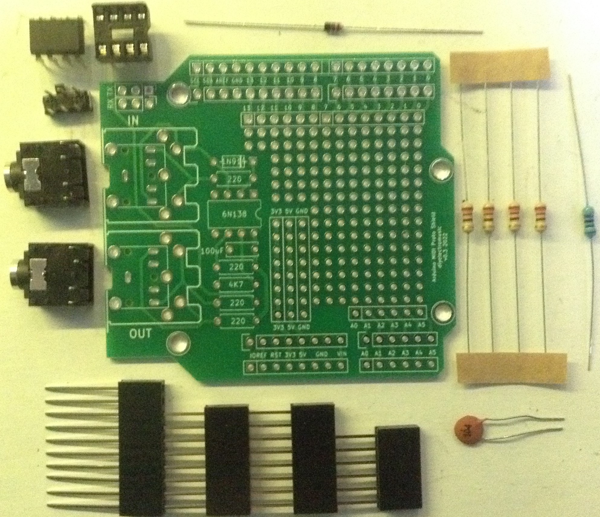 - The Arduino MIDI Proto Shield PCB (GitHub link below).