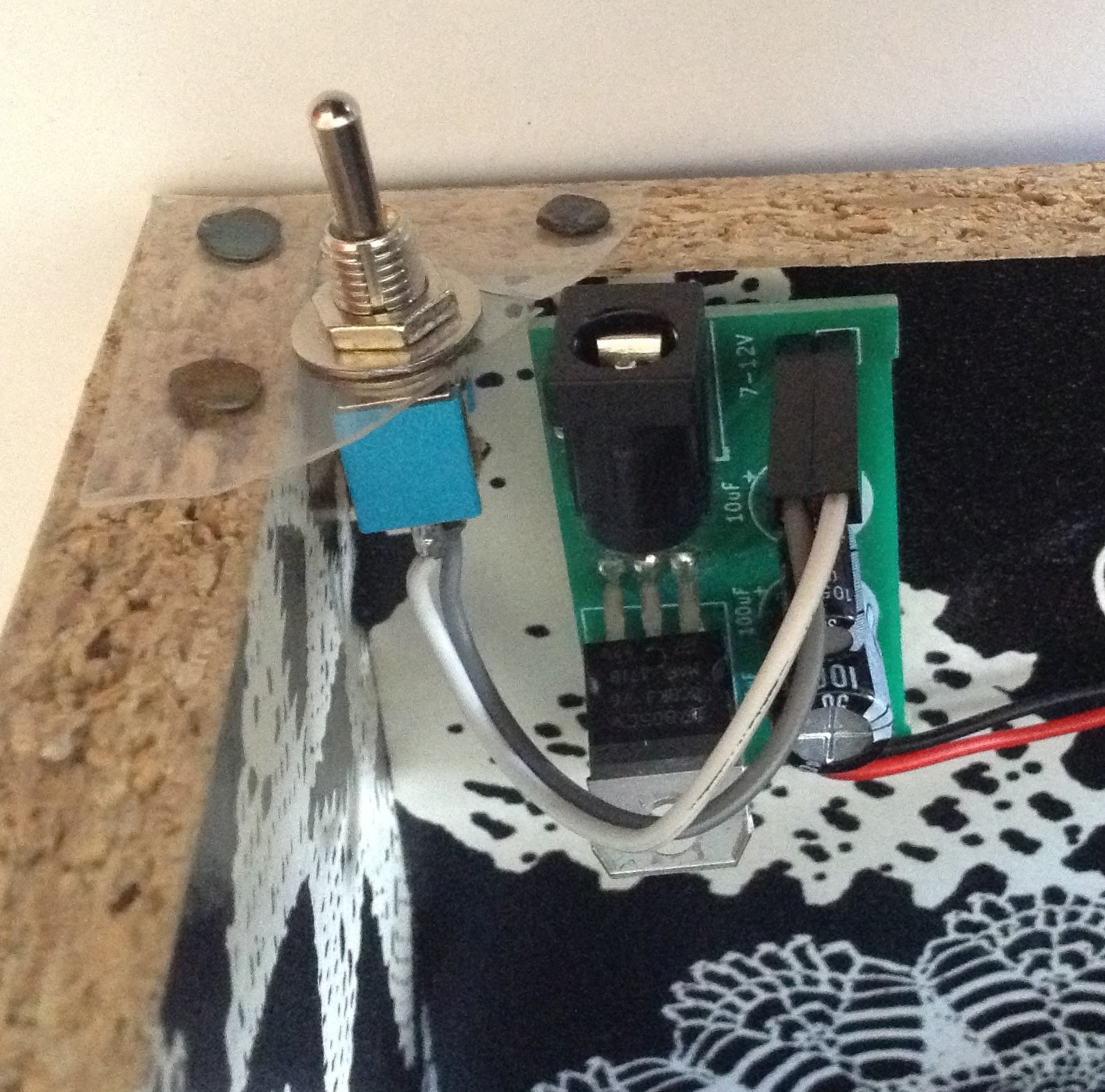 In the final mounting I’ve fixed the power circuit to the side of the box and added a power switch. I’ve also added a power indicator LED, but more on that later.