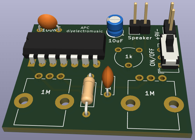 In my own version of the PCB, I’ve opted to keep it as small as possible and left the power and speaker off-board.