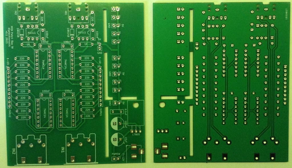I started populating the lower half of the PCB (I only need one MIDI circuit), but then decided it was actually a lot easier to have used the upper half! So I ended up populating that too for convenience and then ignoring the lower half.