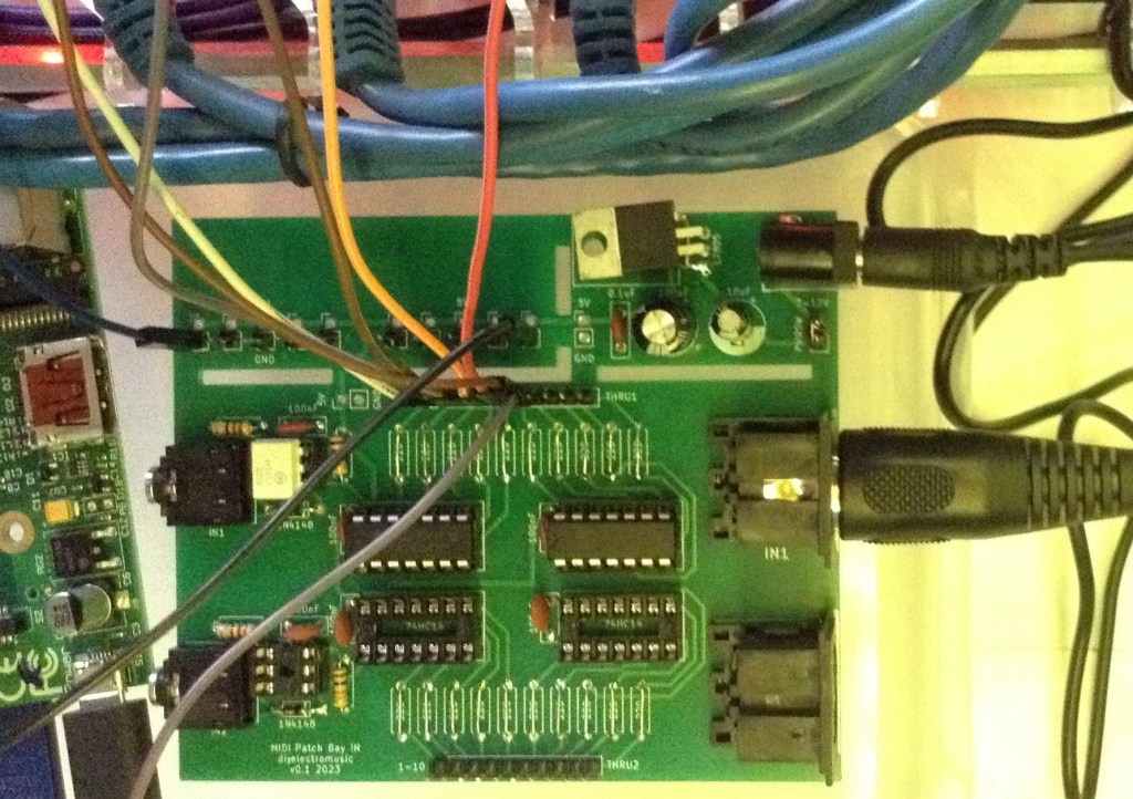 I have a need to route MIDI to several Raspberry Pi boards at the same time, so I’ve hacked together a variant of my MIDI Matrix Patch Bay to give me a 3.3V level serial MIDI THRU interface.