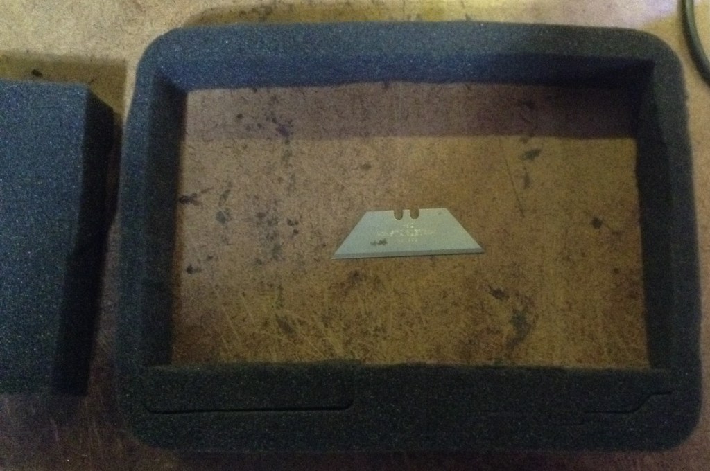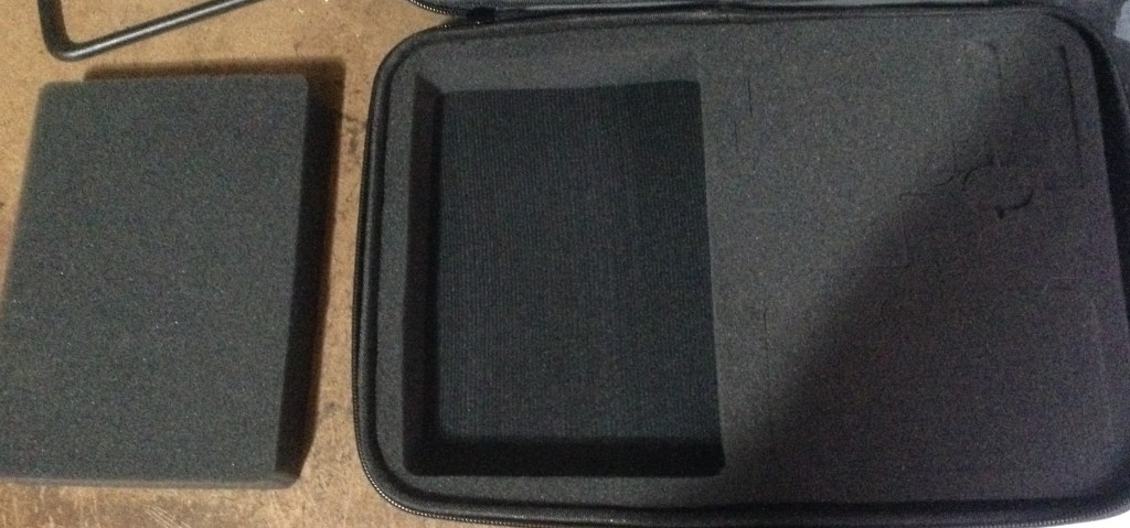 And again now for the larger case which already has a large cutout that pretty much will do the job. I just mirrored the shape of that existing cutout in the other half leaving a slim section of foam between the two.
