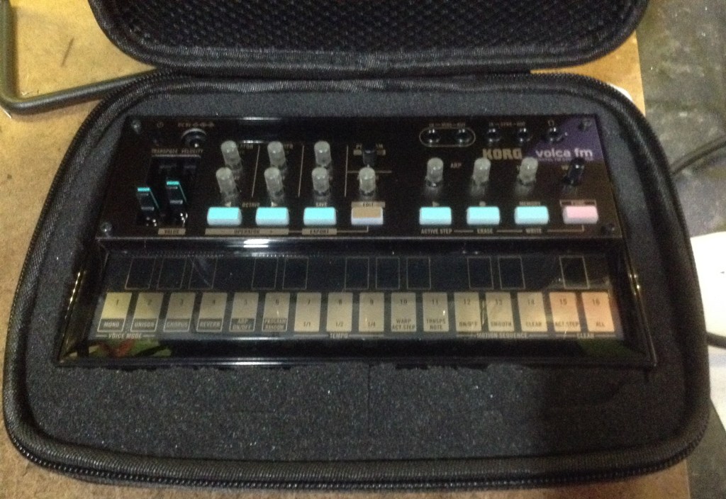They come with push-out foam inserts that are pre-shaped for (presumably) a hard disk caddy and maybe power supply, but suitable application of a sharp knife or razer blade prior to pushing the cutouts out means it is possible to have a nice Volca-sized and shaped rectangle instead.