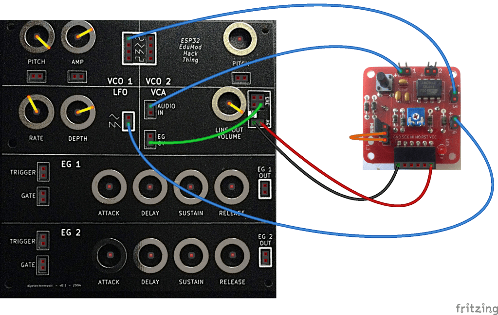 I’ve hooked this up to my Educational DIY Synth Thing as follows: