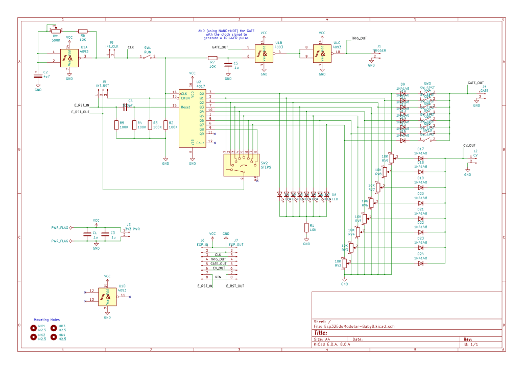 This is a PCB design for a full “Baby 8” style sequencer based on the ideas presented in “Baby8” CV Step Sequencer – Part 1.