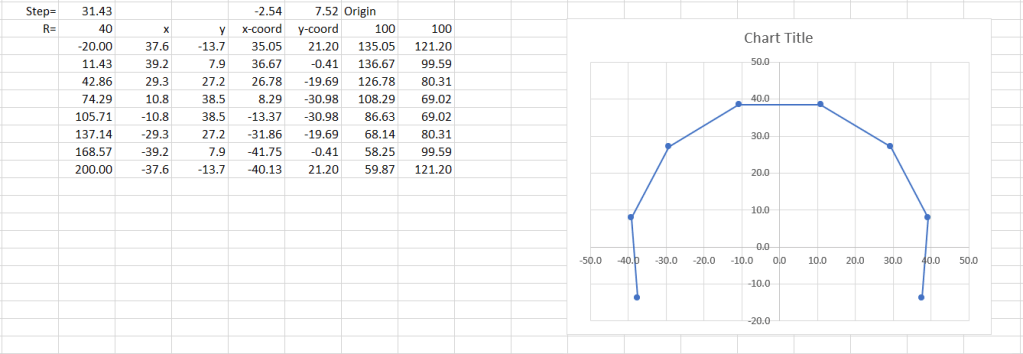 Fun facts: the plotting function allows a quick sense-check. The SIN() and COS() functions work fine as long as you remember to RADIANS() any value in degrees 🙂