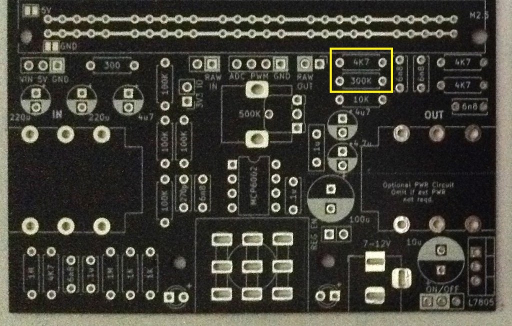 The two 1% resistors are highlighted below. These are required for better accuracy for the PWM output option.