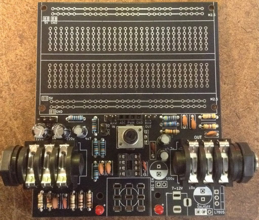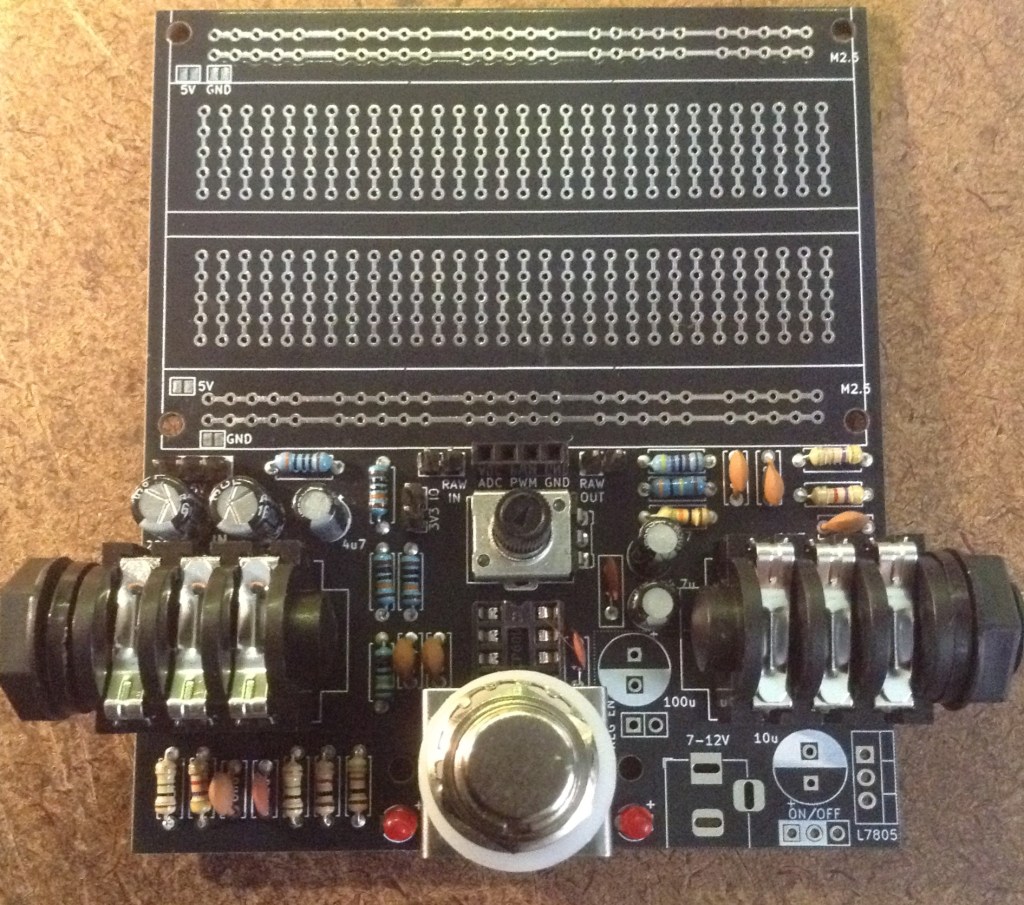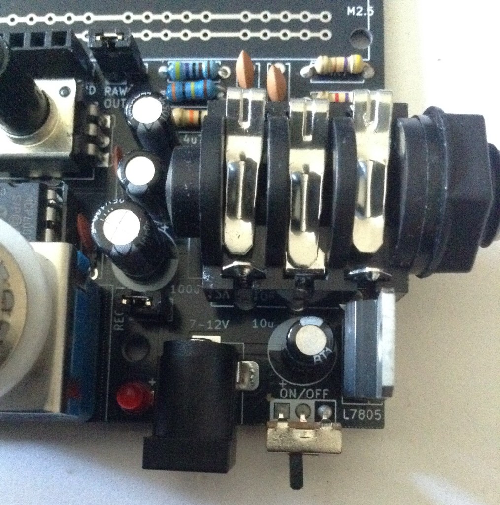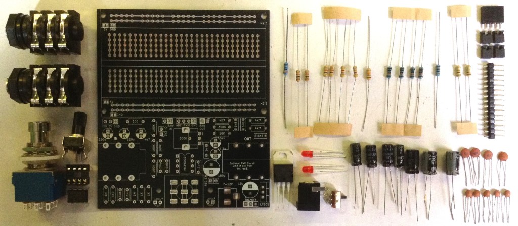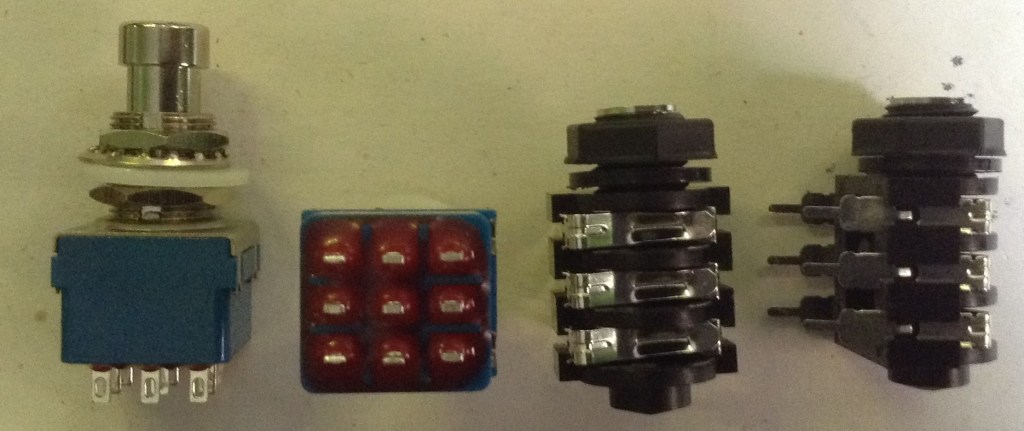- 2x PCB mount std jack (1/4″) stereo or mono jack sockets (see photo).