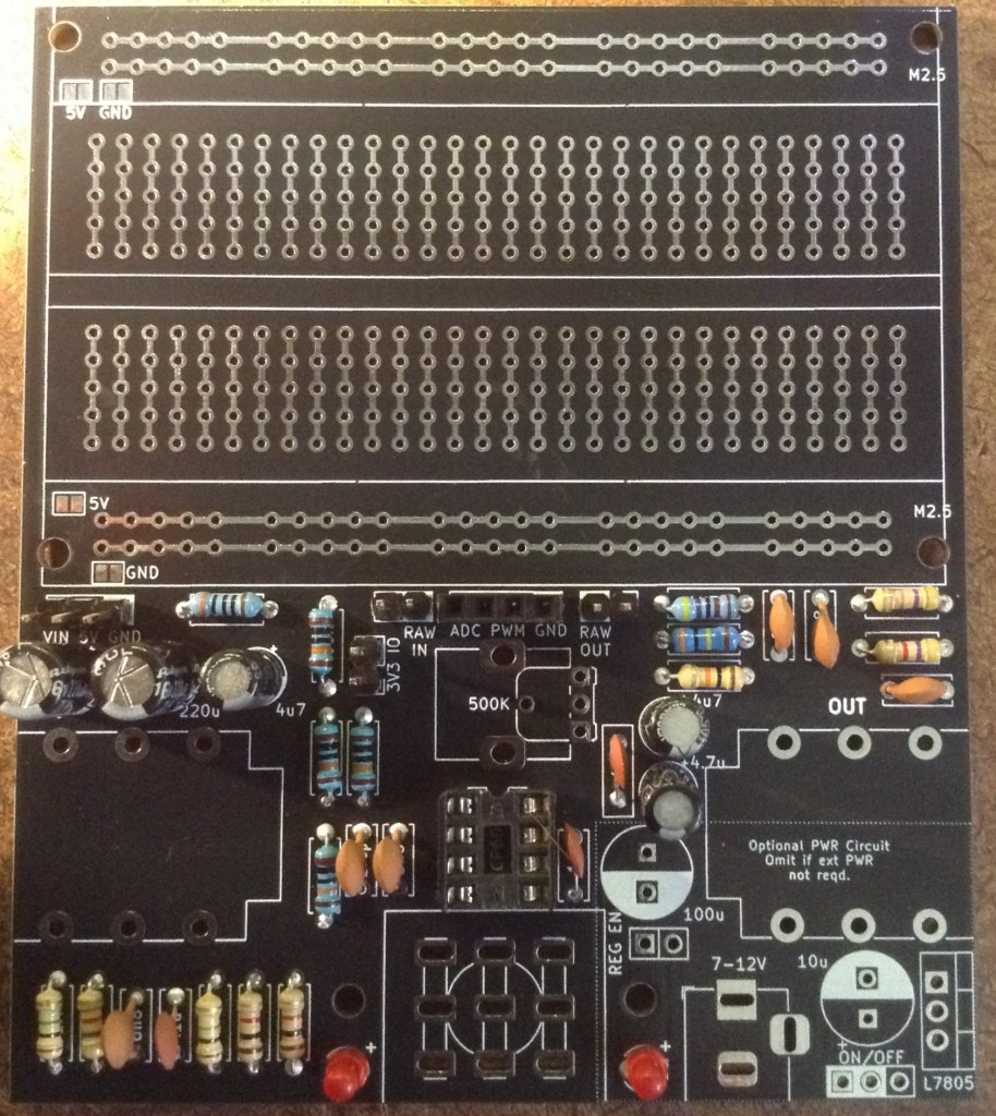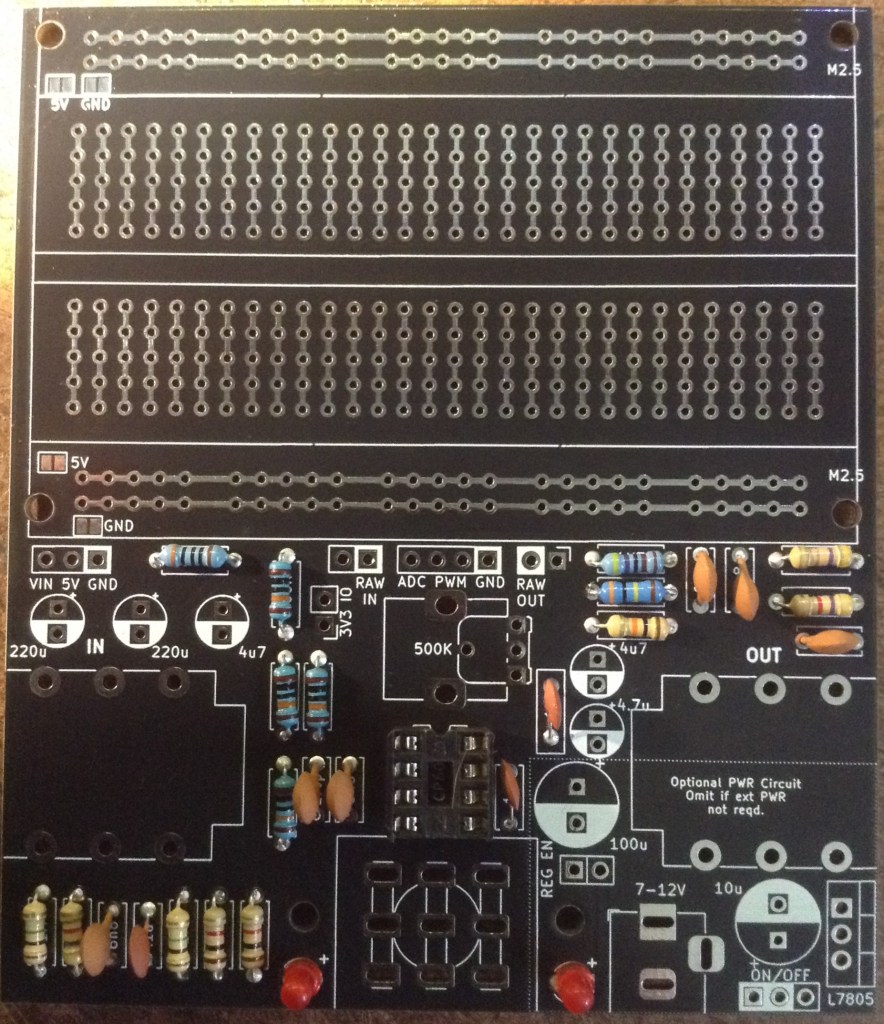 If you know you’re adding the power supply then it is worth adding those components as you go. This first build shows a board with no power supply (left) and one with (right).