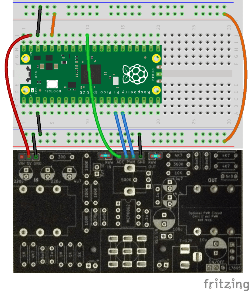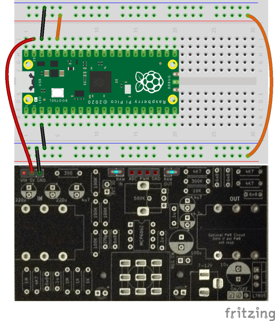 - Raspberry Pi Pico: Use the 5V output connected to the Pico’s VSYS.