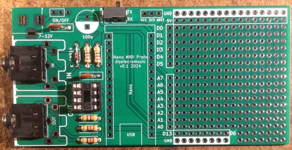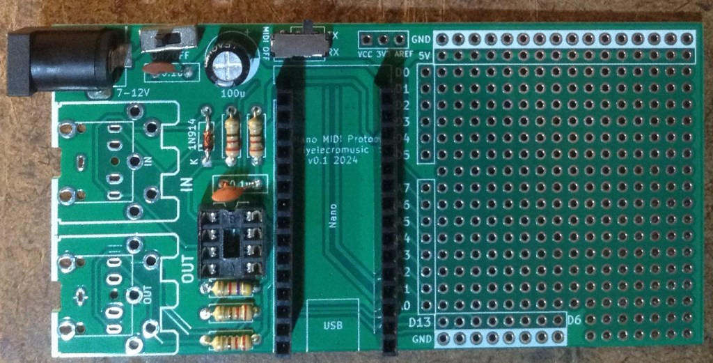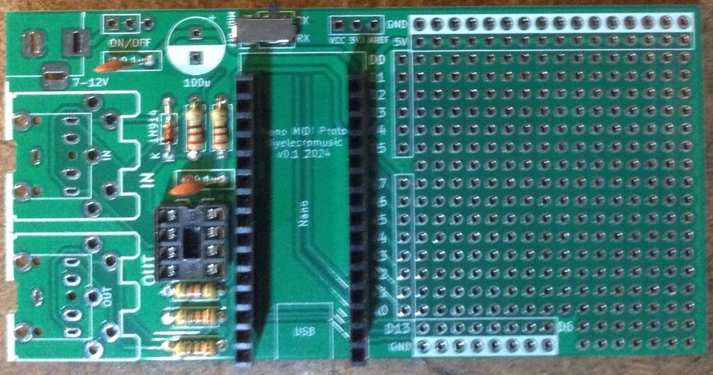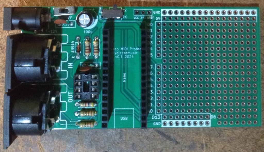 I used a DPDT slider switch with 2.54mm pitch leads in place of the MIDI disable jumpers.