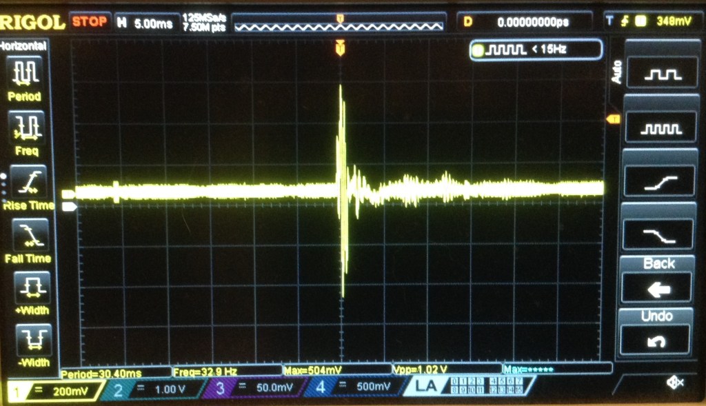 In terms of signals into the ION iDM02, here are some oscilloscope traces of the drum trigger pads.