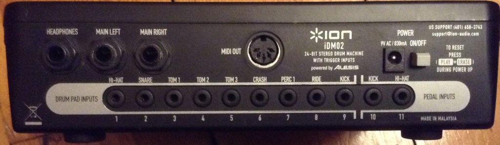ION, it turns out, is related to Alesis. The ION iDM02 is essentially the combination of an Alesis SR-16 drum module and a drum trigger to MIDI box. The SR-16 has MIDI IN and OUT and the drum trigger MIDI box connects to its MIDI IN. With the ION iDM02, the drum triggers are already built into the unit directly.