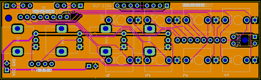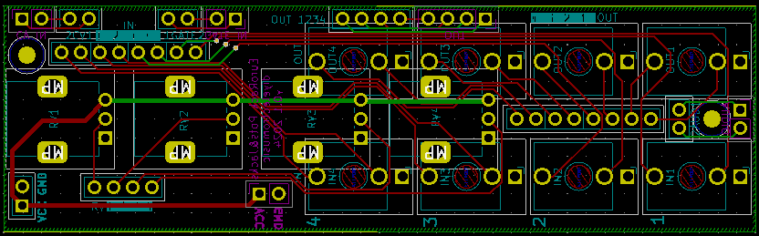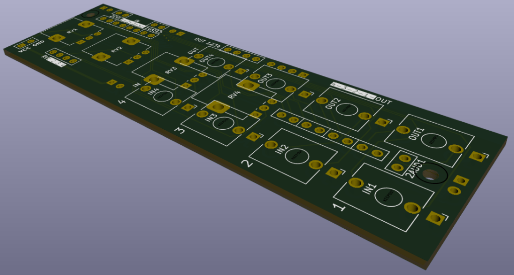 I’ve supported up to four potentiometers and up to eight jacks. Two of the pots overlap four of the jacks, so that is an “either/or”. The jacks are arranged in a 2×4 grid, implying inputs on the left and outputs on the right.