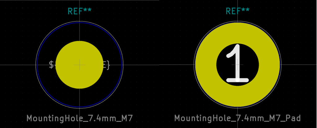 I had to create a custom KiCad part for an M7 hole. I based this on the existing M8 holes (one with a pad and one without).