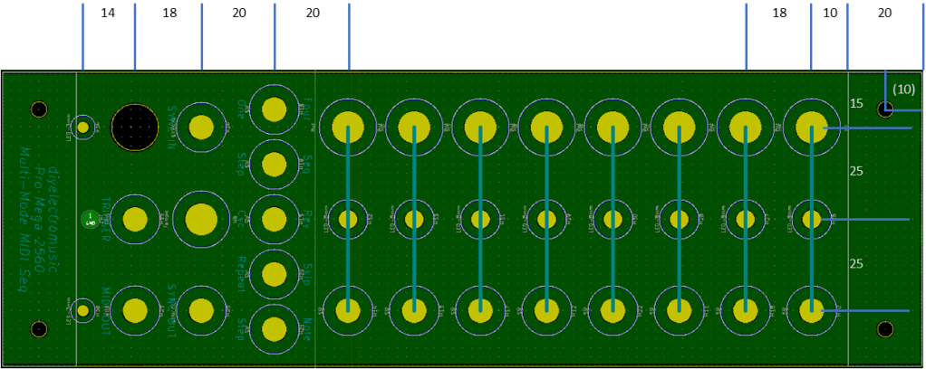 As I’m using a PCB design tool for the panel, I’ve included a rear GND zone, so left a small pad exposed near the bottom to solder to if required. I did think about using “pads” rather than plain holes to allow switches and potentiometers and so on to connect to the GND zone, but in the end opted for plain holes.