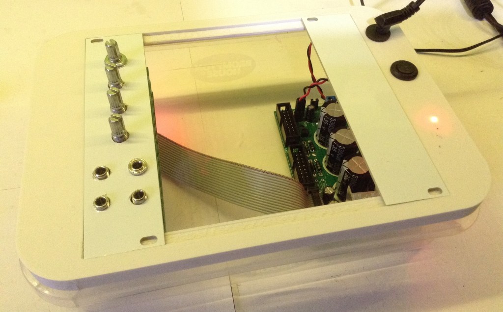 I’ve installed this into my CakeBox 30HP EuroRack Lid. It just needed a couple of holes for a power switch and DC jack socket, which I connected into the screw terminal block on the power supply.