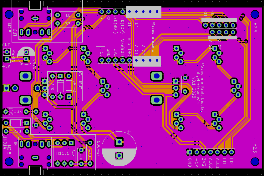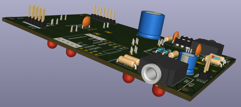 I’ve overlapped the footprints of the lower potentiometer and a “Thonkiconn” style mono jack, so the board can use one or the other (or neither).