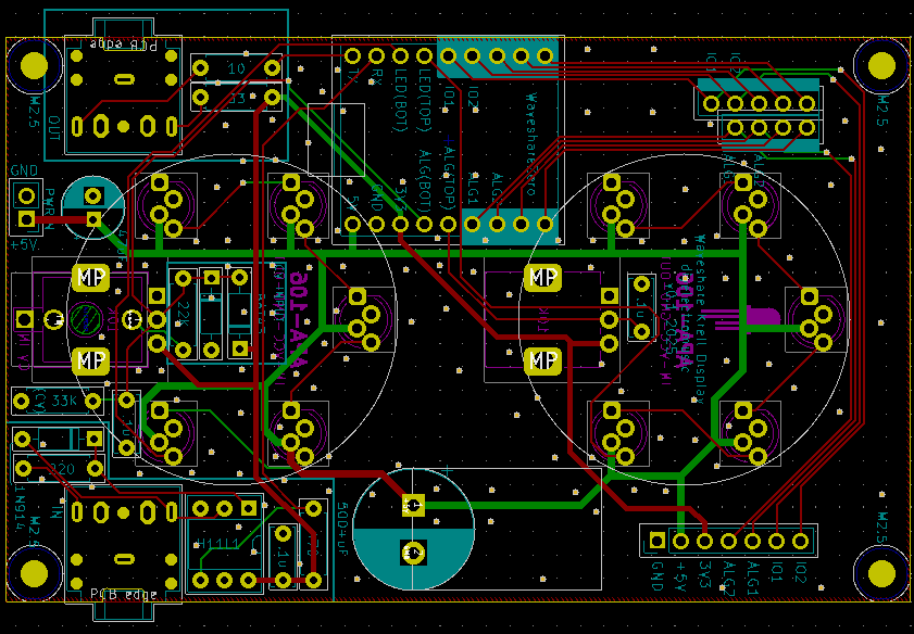 This is a PCB to support one of my dual Forbidden Planet “Krell” Displays. Rather than using ready made programmable LED rings, this is using through-hole APA-106 programmable RGB LEDs.