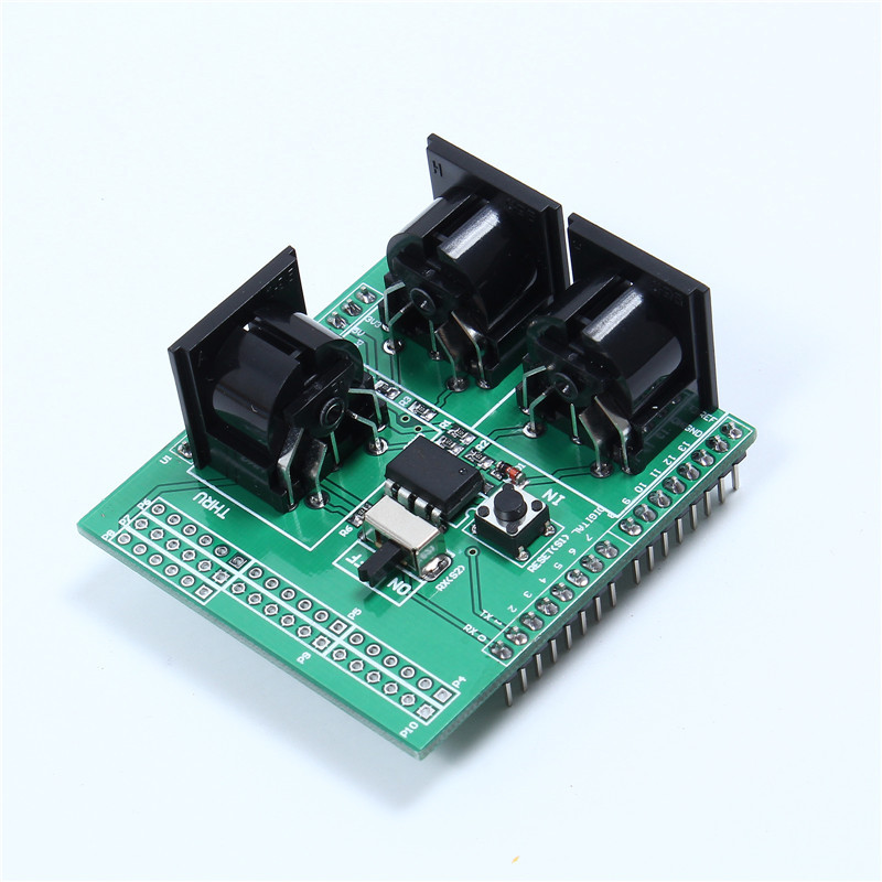These shields are available very cheaply and designed to plug directly onto an Arduino Uno. They are a variation of an original Olimex open source design (details here) but details of the specifics of this shield seem pretty sparse. But it isn’t too complex to figure out.