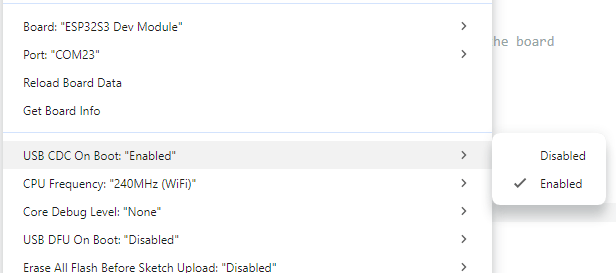 | Native USB | USBSerial | Serial (if ARDUINO_USB_CDC_ON_BOOT set) |