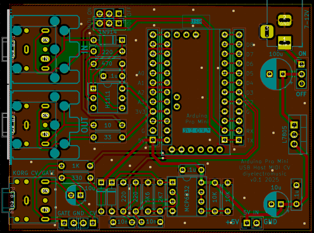 I’ve allowed for both MIDI DIN and TRS sockets. There is also an option for individual GATE and CV out via jumper headers in addition to the Korg Volca compatible TRS.