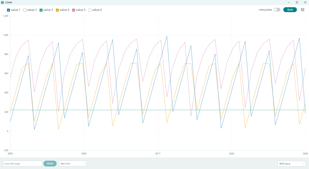 The above are all samples taking at “Arduino loop” speed, which is slowed down by the serial printing, but it gives a pretty good idea of what is going on.