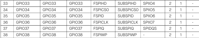 But now we can see why the Arduino core is using GPIO 34-37, but we can also see that GPIO 10-13 would be an alternative (fast) option too.