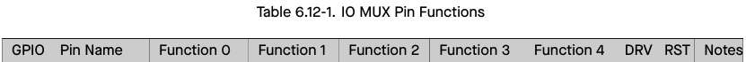 - Some GPIOs have a default SPI function that bypasses the GPIO MUX routing, so allows for better performance (see section 6.6 “Direct Input and Output via IO MUX”).