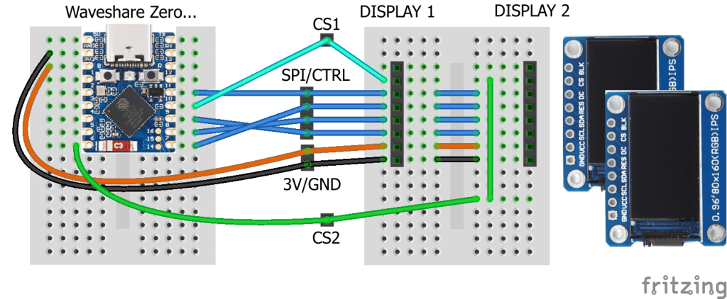The GPIO usage being assumed is described here: Waveshare Zero Multi Display PCB Build Guide.
