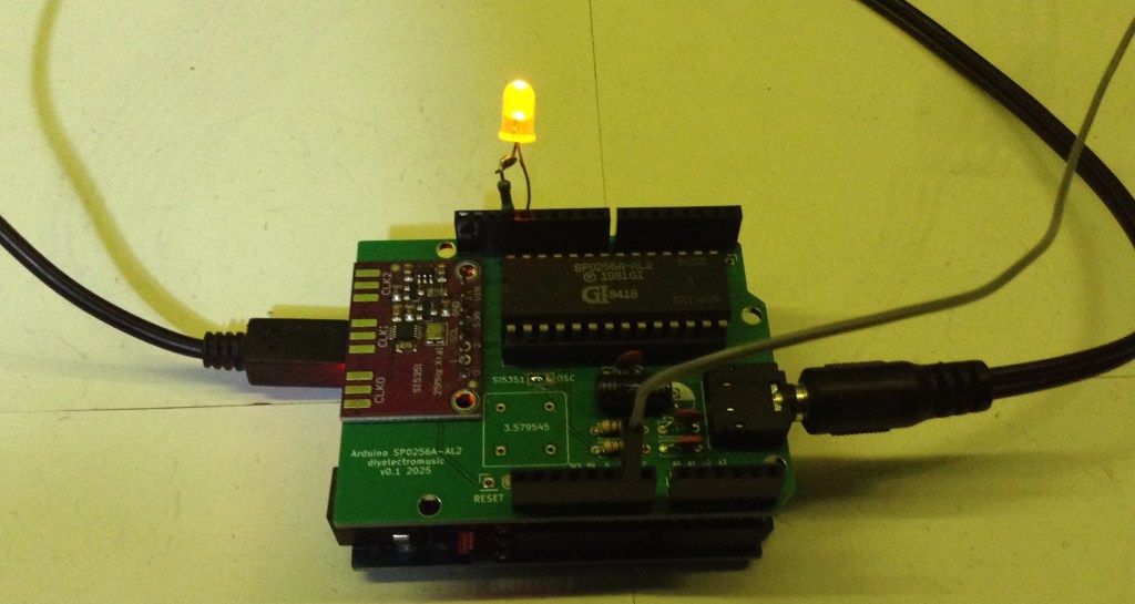 Also, as it doesn’t look much, I’ve added an LED to light up at the start of an allophone and to go off whenever a pause is encountered.
