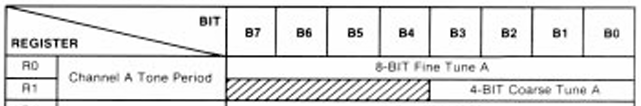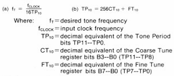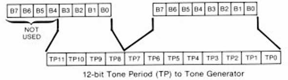 The datasheet states that the tone registers define a 12-bit tone generator period: